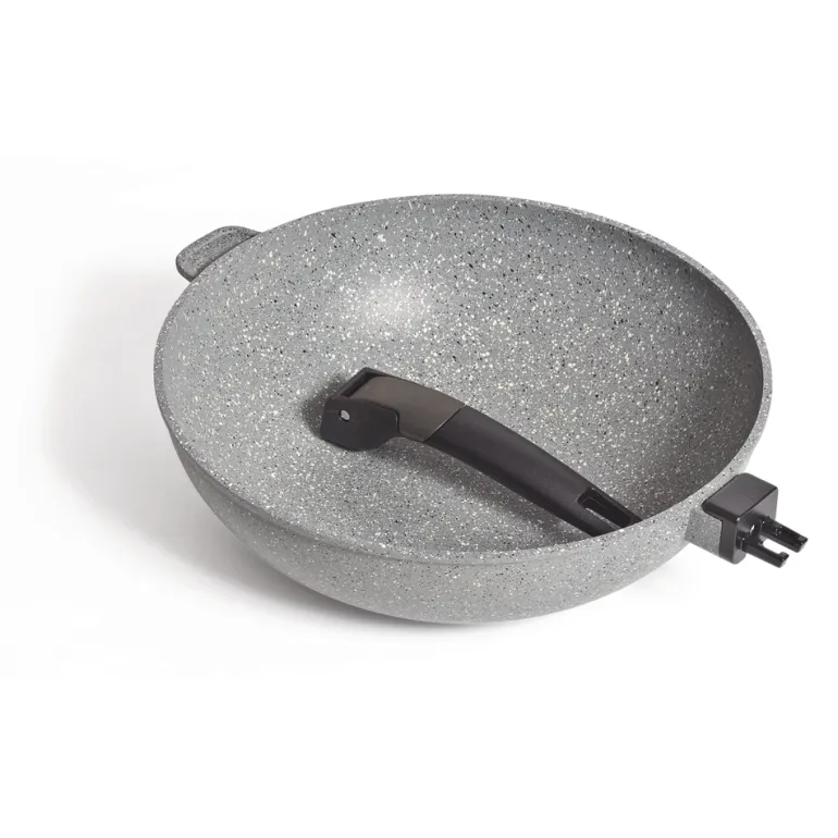 This lightweight diecast aluminium frypan features a detachable handle and a food-safe, triple-coated non-stick surface. It’s compatible with induction cooktops and oven-safe once the handle is removed.