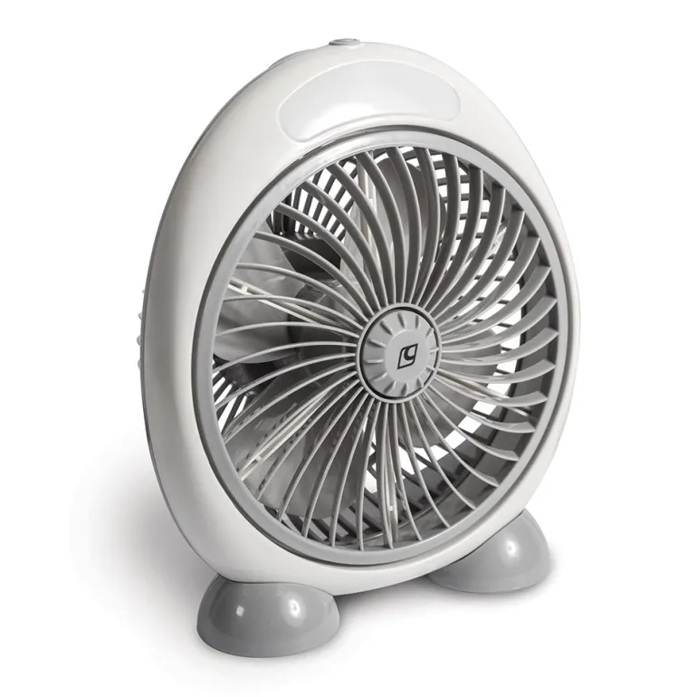 The Aerobreeze Portable Fan is a lightweight, lithium-ion rechargeable fan perfect for personal cooling. With two speed settings and an integrated LED light, it provides both airflow and illumination. Ideal for camping or on-the-go use, it includes a DC charging cable and USB output for added convenience.