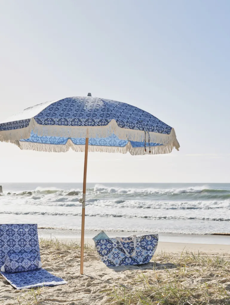 This oversized tote bag combines style and functionality, perfect for carrying beach essentials. The cotton webbed carry straps and base eyelets allow for easy cleaning and sand removal.