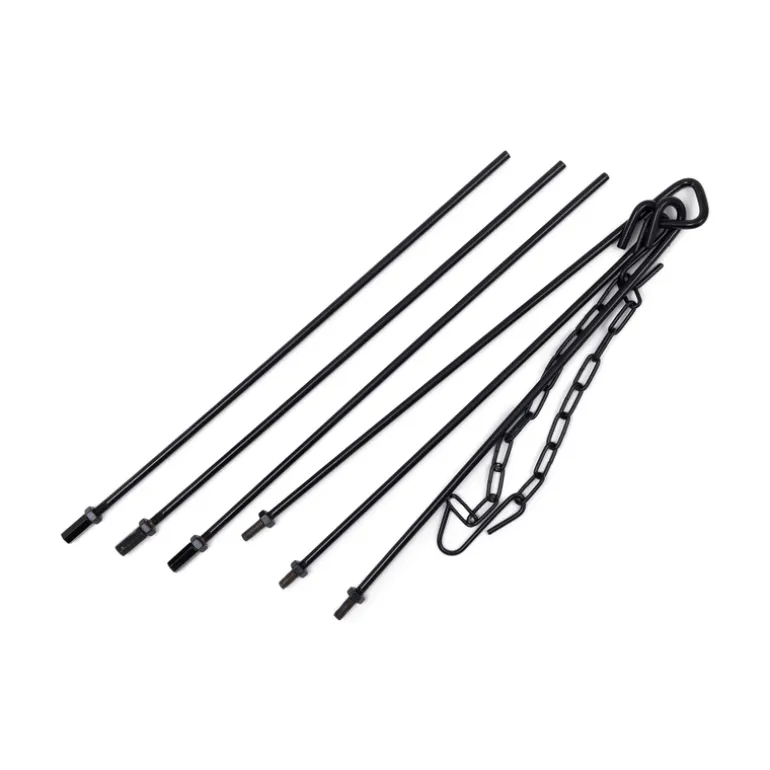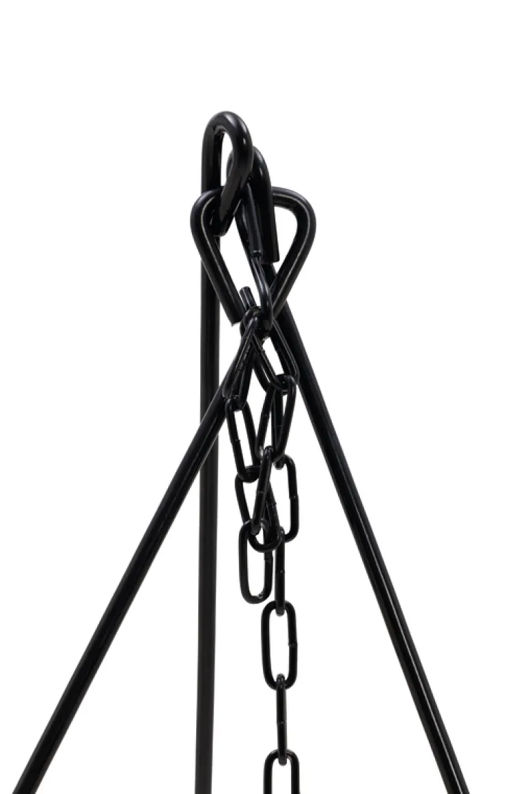 This collapsible tripod is the perfect solution for overfire cooking. Made from durable 9mm cold roll steel, it features an adjustable chain and screw-in legs for easy setup. The flameproof, heat-resistant design ensures long-lasting use.
