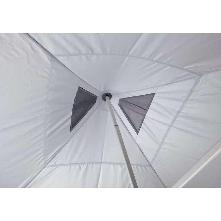 - Frame: Quick to erect, powder-coated white steel frame with no assembly required