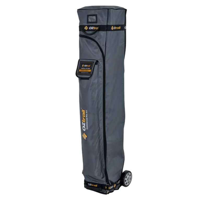 A durable 1680D roller bag with heavy-duty wheels, ideal for transporting the Commercial Pro 3.0M Gazebo. It features internal pockets for pegs and instructions.