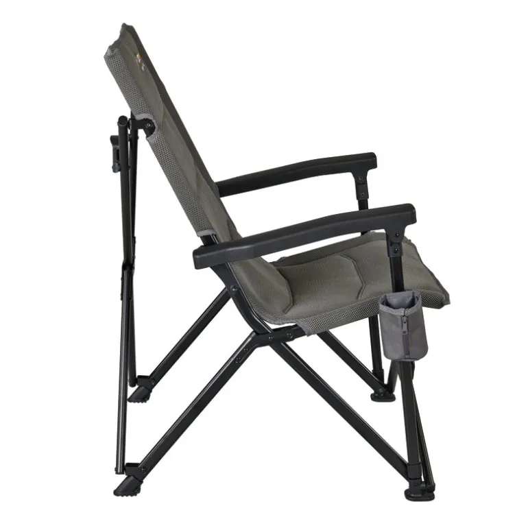 Enhance your outdoor adventures with the OZtrail Hampton chair. Featuring an oversized steel and aluminium frame for optimal strength, this chair is built to last. The rear chair lock ensures stability, while the ergonomic seat design and reclined backrest relieve leg tension and boost comfort. Crafted with a soft touch triple layer 3D mesh fabric, relaxation reaches new heights. Plus, its oversized backpack-style carry bag makes transportation a breeze, leaving your hands free for the journey ahead. Elevate your outdoor experience with the OZtrail Evo chair today.