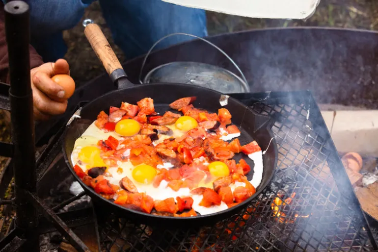 30cm round frypan with a removable wooden handle for easy storage. Pre-seasoned and ready to use for versatile cooking.