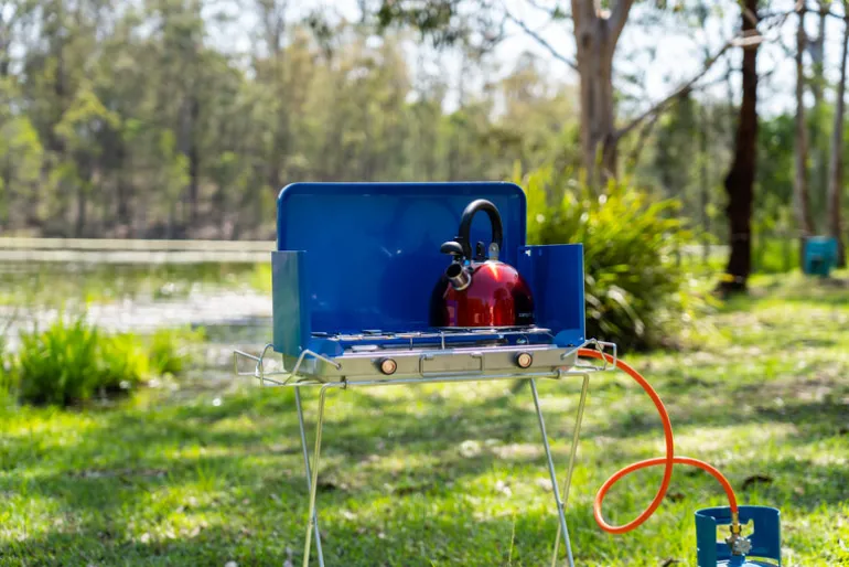 The Companion Winged Stove Stand offers a sturdy base for most 2-3 burner stoves, ensuring a safe cooking setup for you, your family, and friends. Designed with winged ends, it keeps your stove secure and prevents any sliding, while the lower shelf provides handy storage space for utensils or cookware. For added convenience, the stand folds flat, making it easy to store and transport wherever your adventures take you!