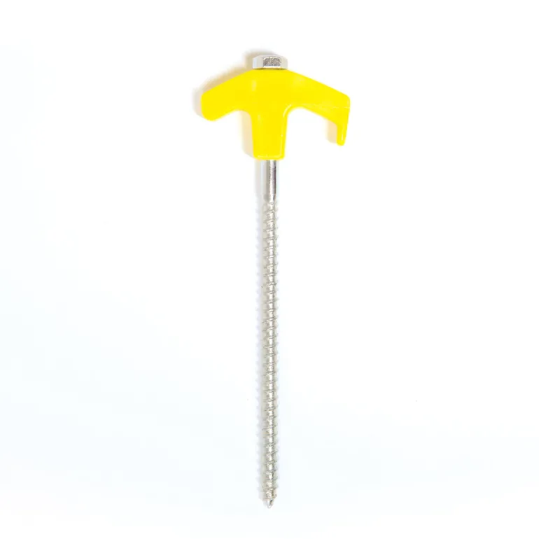 Secure your tent with this 16-piece screw-in peg set, featuring electro-galvanized steel pegs with high-visibility yellow handles. Includes 15 pegs, a 13mm socket, and a carry case for convenience.