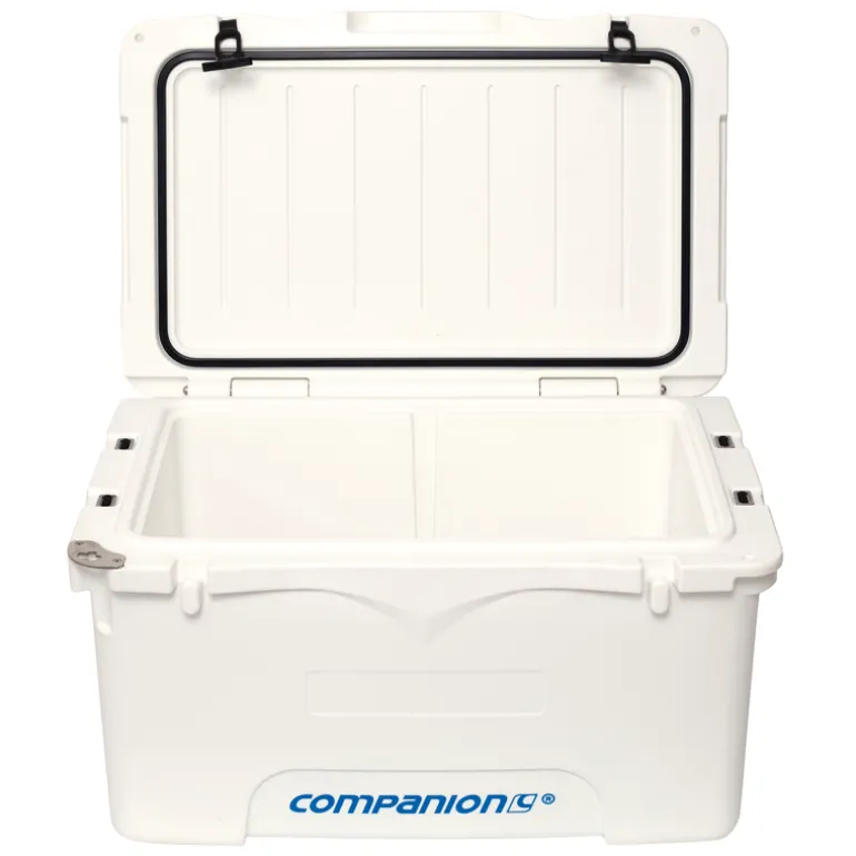 The 70L roto-moulded ice box is designed for long adventures, holding up to 108 cans and rated to keep ice for up to 7 days. Its tough build includes a silicone gasket, non-slip feet, and tie-down points.