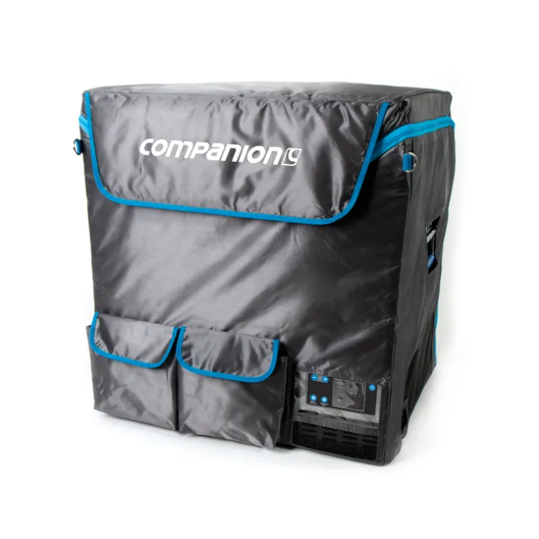 This protective cover is designed for the 75L Fridge/Freezer, providing insulation and easy access during operation. It also helps improve efficiency and power consumption.
