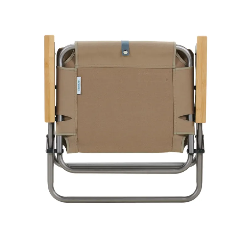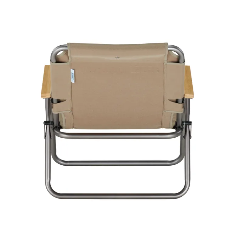 This low chair is perfect for the beach, picnics, or sitting by the fire. It features heavy-duty canvas fabric and a lightweight aluminium frame. The eco-friendly design includes sustainably sourced bamboo armrests for added comfort and convenience during outdoor activities.