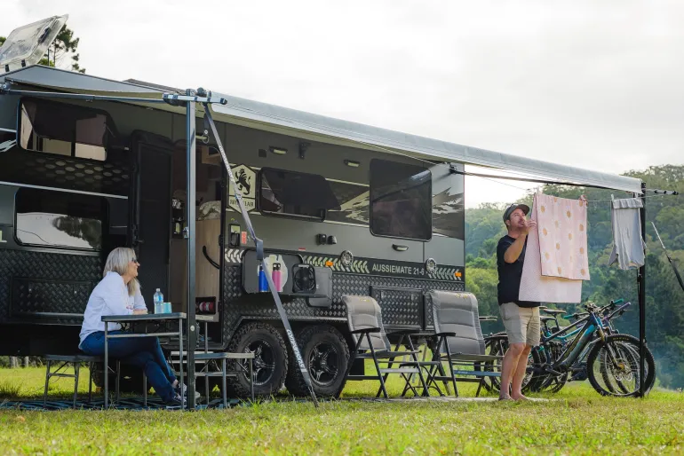 Add a touch of convenience to your outdoor adventures with the Companion Caravan Awning Clothesline, a compact solution for drying clothes wherever you are. This versatile accessory easily attaches to your awning with an adjustable locking clamp, suitable for both square and round awning arm tubes. With a generous 20m length rope to accommodate awnings between 8FT and 26FT long, you will achieve 2-3 lines depending on your awning size. When not in use, simply store it in the heavy-duty carry bag included, keeping your caravan, camper, or motorhome tidy for your next destination.