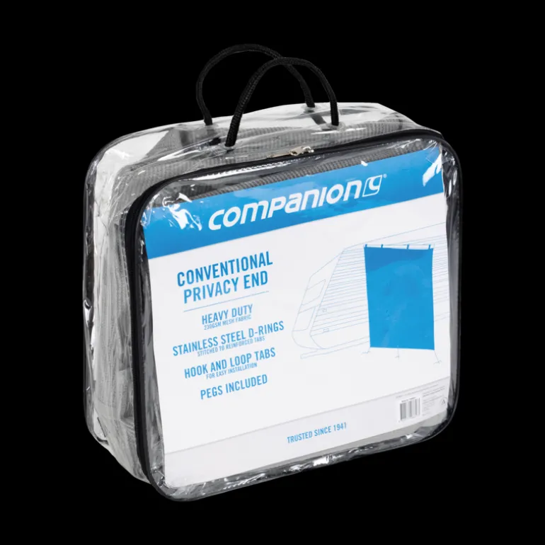 Designed for conventional caravan awnings, this privacy end screen offers shade and privacy while still allowing airflow. Made from durable mesh with Velcro hooks for easy installation.