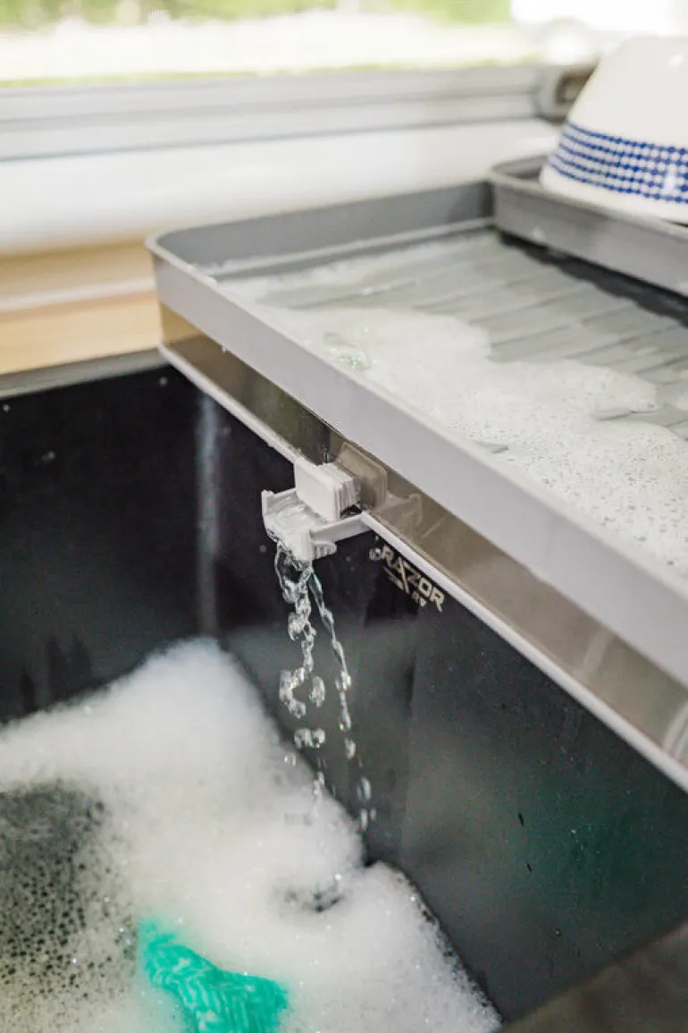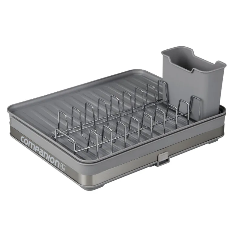 The Companion Deluxe Compact Dish Rack is perfect for caravans, offering both a compact and expandable design for small or large spaces. It includes a cutlery holder and dish holders, with water runoff directed into the base. Choose to collect the water or drain it into a sink using the built-in bung. Packs away small for easy storage and convenience on the go!