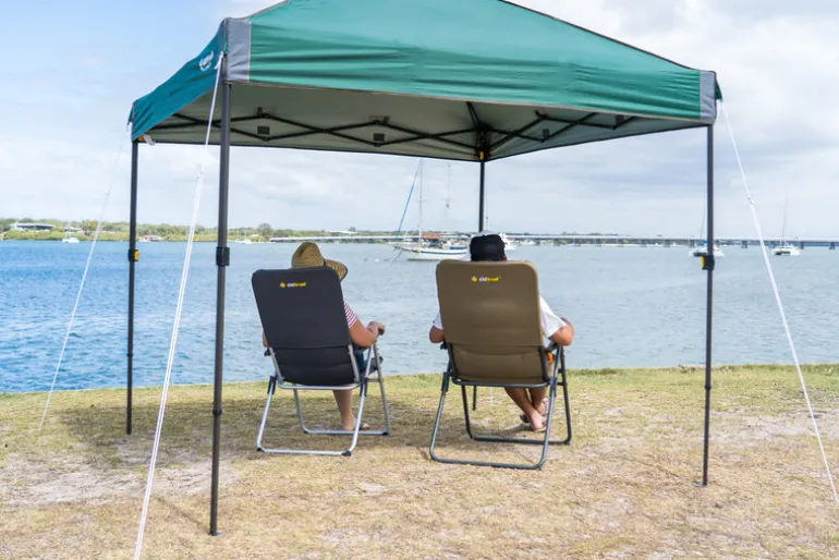 The OZtrail Cascade 5 Position Recliner provides comfort with five reclining positions and padded seating. Its durable aluminium frame ensures stability, and the chair comes with a detachable drink holder and a convenient carry cover.