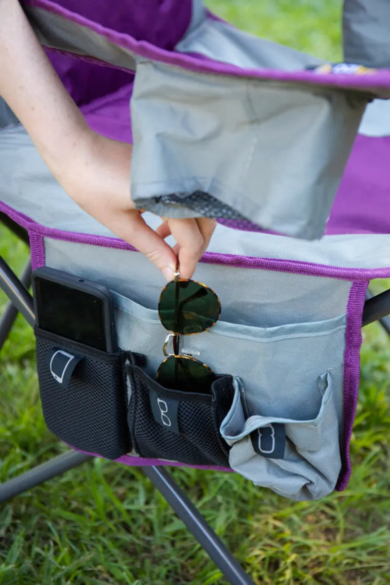 Designed for comfort and convenience, this chair features a drink holder and insulated cooler. Its compact size and included carry bag make it perfect for taking on the go.