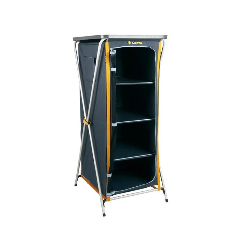 This deluxe folding cupboard offers four shelves and packs flat for easy transport. The sturdy aluminium frame and Oxford polyester fabric make it a durable and convenient storage solution for camping.