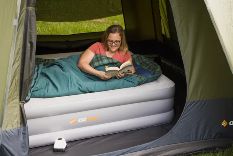 The DuoComfort Queen Double High Air Bed provides elevated sleep height and superior comfort with its air support coil construction and soft velour top. Designed for home or camping use, it’s made with puncture-resistant materials.