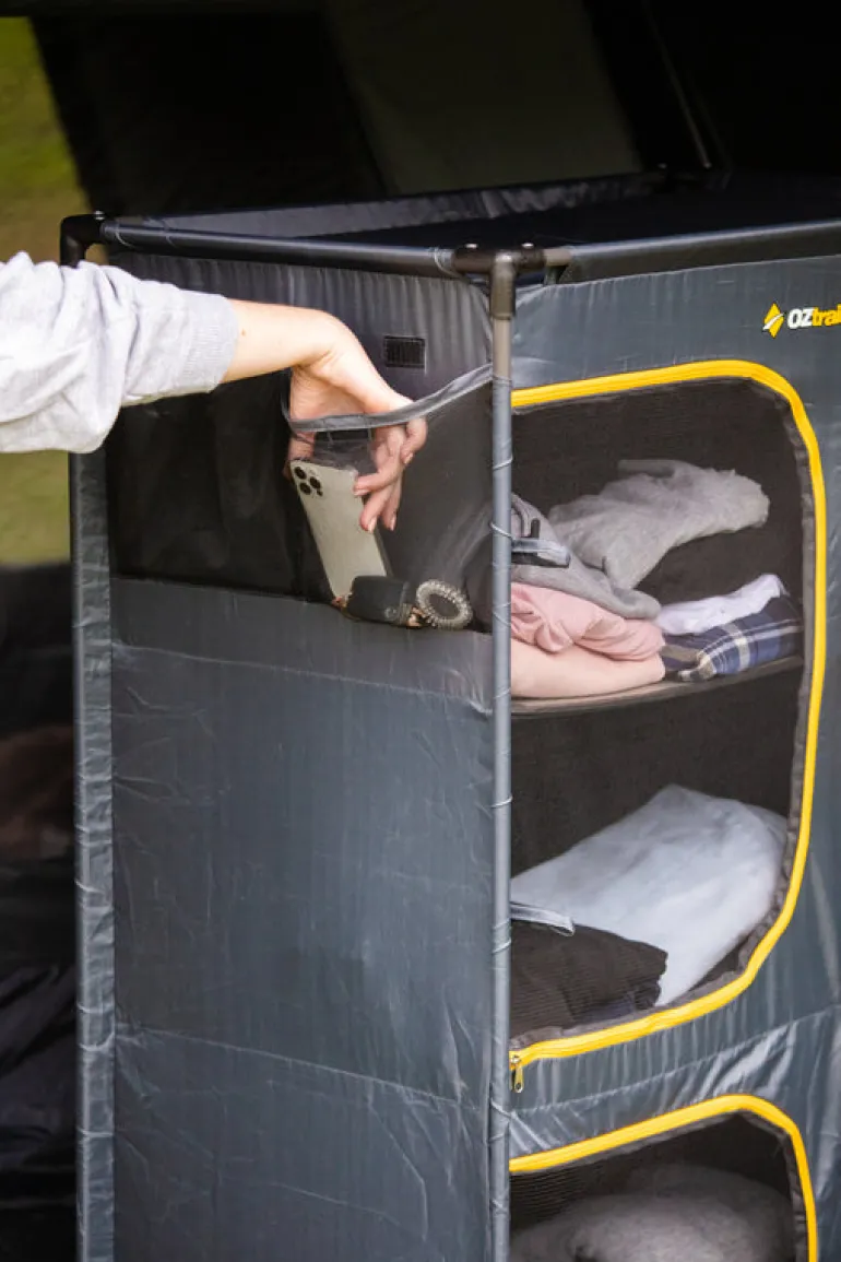Maximise your storage space with this 5-shelf unit. It features a sturdy steel frame with durable Oxford polyester fabric and removable MDF shelves, packing flat for easy transportation.