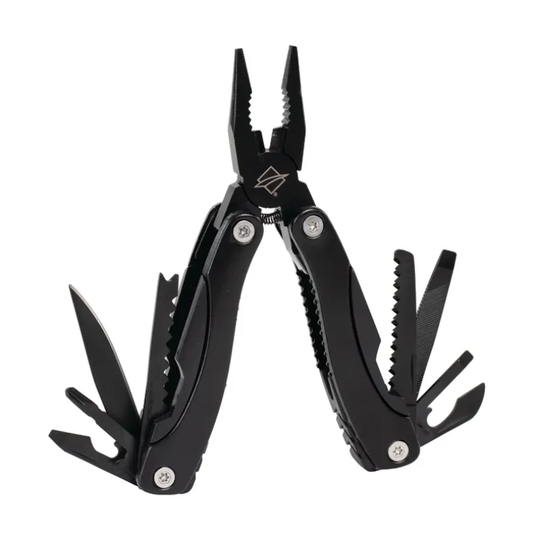 This compact multi-tool includes 15 essential tools like pliers, a wood saw, screwdrivers, and a bottle opener, all made from rust-resistant material. An ideal accessory for camping and outdoor adventures.