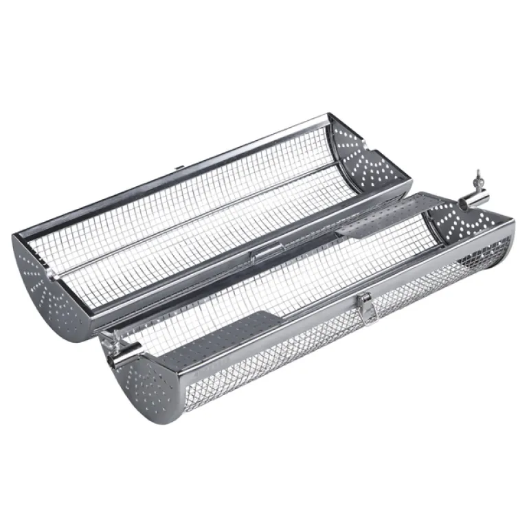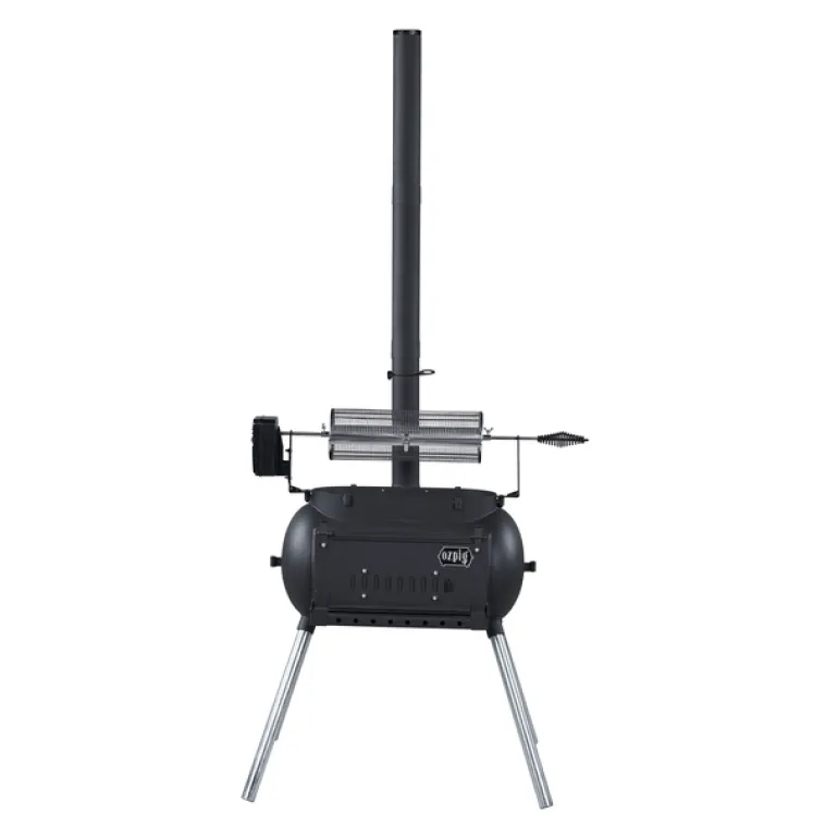 Cook almost anything on a rotisserie with the Ozpig Rotisserie Basket for maximum flavor. Ideal for cooking wings, fries, veggies, and more, this accessory is designed to fit the Ozpig Big Pig & Fire Pit Rotisserie Kit. Simply place the basket on the rotisserie shaft and lock it in place with the thumb screws.