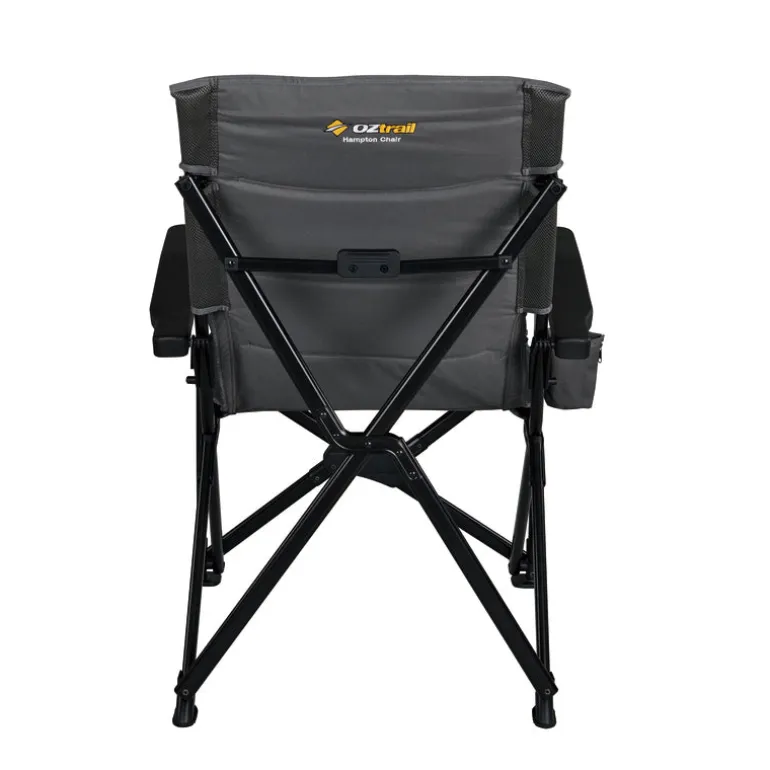 Enhance your outdoor adventures with the OZtrail Hampton chair. Featuring an oversized steel and aluminium frame for optimal strength, this chair is built to last. The rear chair lock ensures stability, while the ergonomic seat design and reclined backrest relieve leg tension and boost comfort. Crafted with a soft touch triple layer 3D mesh fabric, relaxation reaches new heights. Plus, its oversized backpack-style carry bag makes transportation a breeze, leaving your hands free for the journey ahead. Elevate your outdoor experience with the OZtrail Evo chair today.
