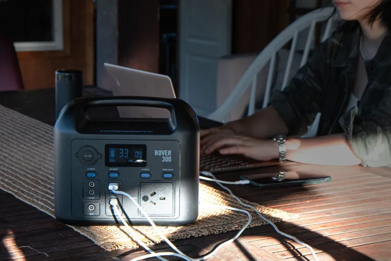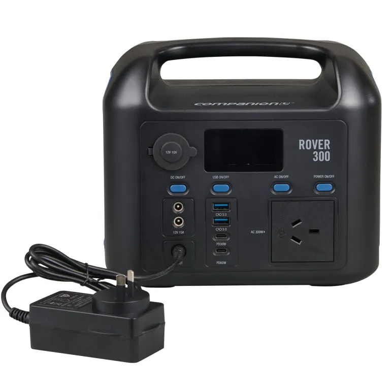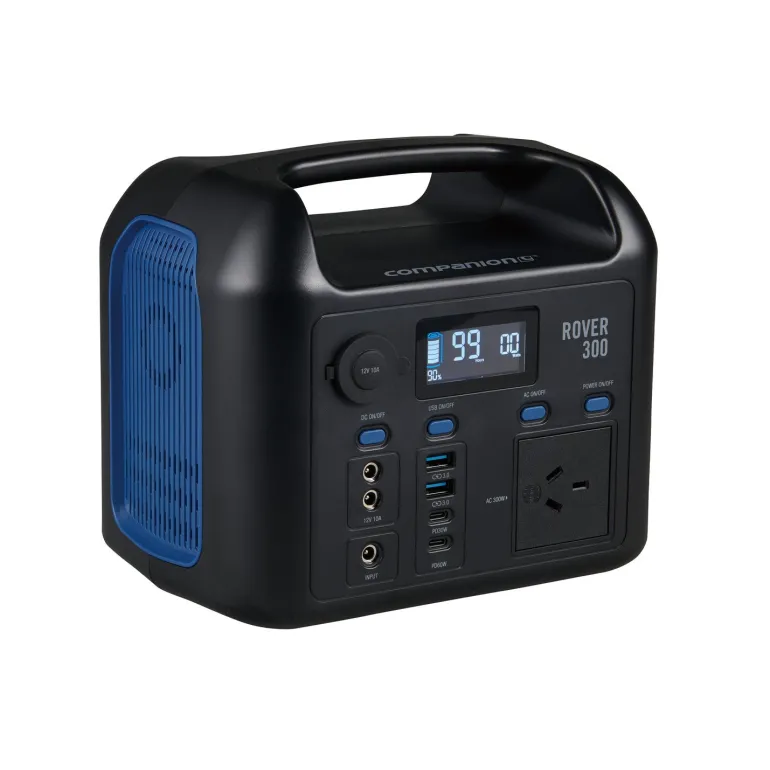 Introducing the Companion Rover 300w Power Station, this compact and reliable portable powerstation features a 288Wh Lithium LiFePo4 battery and a 300W Pure Sine Wave AC inverter, providing reliable power for your devices. With multiple output options, including a 12V socket, USB-A/USB-C ports, and a DC output, it’s versatile enough to charge portable fridges and freezers, phones, laptops, drones, CPAP machines, lighting, other smart devices, and other essential devices. This versatility also allows you to charge multiple devices simultaneously.